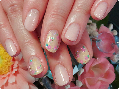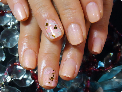 5月のお得なジェルデザインのアレンジver.淡いピンクが女子心をくすぐります。
