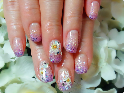 こちらも7月のGNのラメホログラムの色を優しいパープルに。指先がとっても涼しげですね。