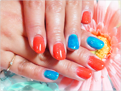 マリンテイストにレッドとブルーをランダムな組み合わせに。指先から元気になりますねっ