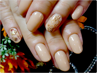 こちらはベースのカラーをゴールドっぽいベージュに変えて、ぐっと大人っぽい上品な仕上がりになりました。