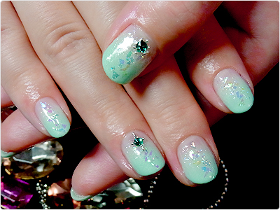6月のお得なジェルネイルのアレンジver.南国の海の様なエメラルドグリーンが見るたびに心を穏やかにしてくれます。