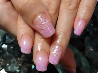 8月のGNを優しいパープルピンクにアレンジしたお嬢様ネイル。ベースがグラデーションなので長く楽しめますねっ。