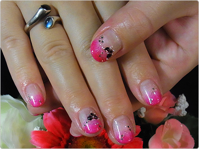 8月のGNエアーブラシを、トロピカルなピンク系でアレンジしたらこんなにキュートにっ。