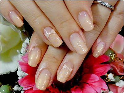 4月のお得なジェルネイルの色違いVer.シルバーとうっすらピンクで優しい色合いに。