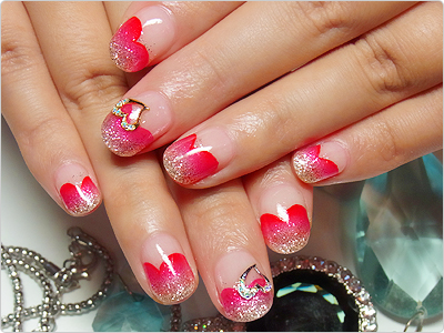 お得なジェルデザインのgift's Nailに、ハートのパーツをプラスしました。まるで本物のアクセサリーのようにゴージャス!