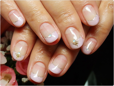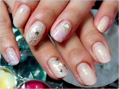 こちらも2月のgift'sNAILのアレンジVer.ピンクにも見えるラベンダーカラーとゴールドのレースの相性がバッチリ。