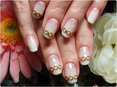 ミルクの様な優しいホワイトグラデーションにリングのアート。デザインで見せる、大人シックなマリン風ネイル。