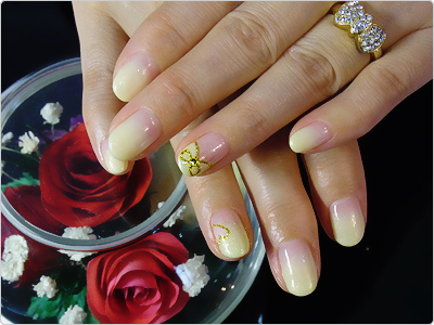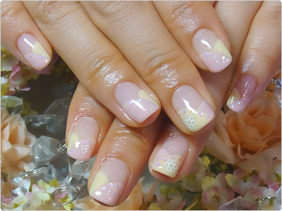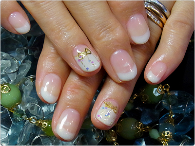 爽やかなレモン色のグラデーションにポイントでリボンのフレンチ。今までちょっとなかったフレンチスタイルは、とってもさりげなく女子ですねっ。