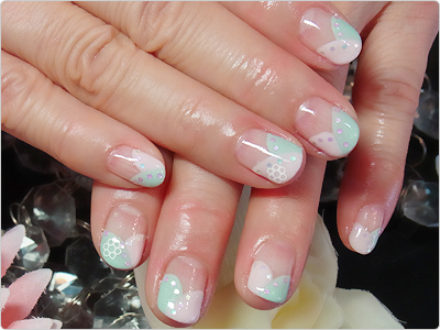 5月のお得なジェルネイルのフレンチ。ラメで作ったドット柄がとってもキュート。