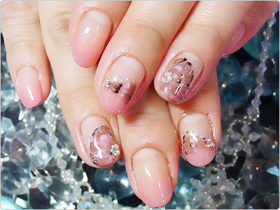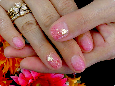 こちらはピンクでアレンジしたGNデザイン。先端にはうっすら白っぽいラメでキュートさがUP。ガーリーなイメージになりました。