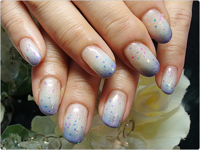 優しいホワイトとパープルのダブルグラデーション。半透明なホログラムがキラキラととっても綺麗。