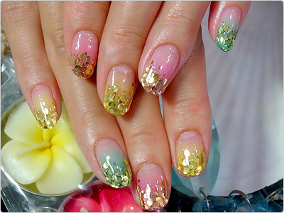 ゴールドのホログラムをピンク・イエロー・グリーンで飾ったPOPで可愛いホログラデーション。なんだかとってもおいしそう♪