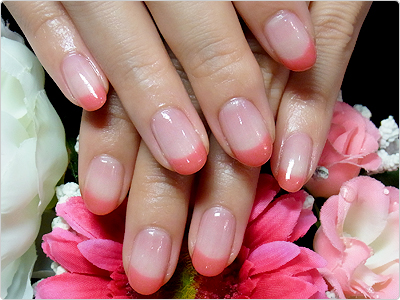 2月のお得なジェルネイルデザインのアレンジ。フレンチ部分のカラーを今年の春色、シャーベットカラーにして春を先取り!