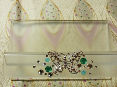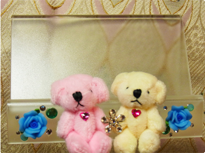 こちらはスワロフスキーを3色散らした縦タイプのカードスタンド。ドレッサーの一員としても活躍しそうですね☆