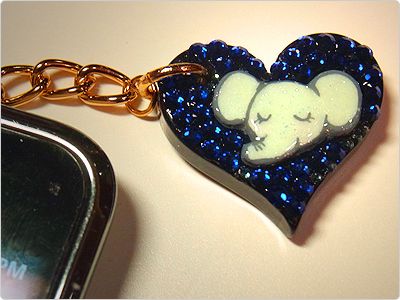 象さんがお好きな方用にお作りした、オリジナルイヤホンジャック。シックな藍色のスワロフスキーで囲まれた象さんがとてもキュート。男性も使える、キラキラアイテムですね。