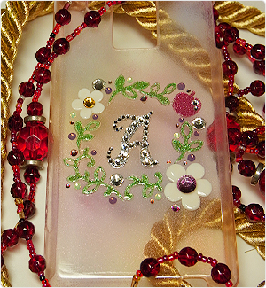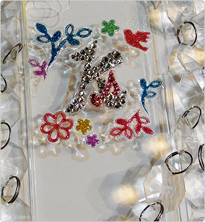 お気に入りのケースにポイントでイニシャルを入れたポイントデコ。これだけでみんなと違うゴージャスケースに。