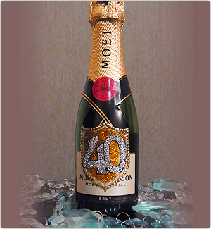 シャンパンのハーフボトルに、記念のポイントアート。おいしくいただいた後は、飾ってもおけるプレゼントっ♪