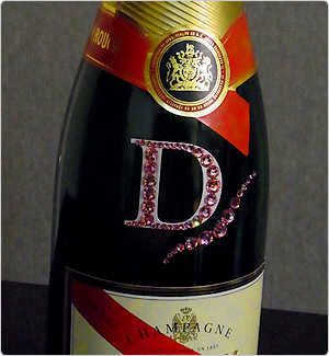 プレゼント用のシャンパンに、ポイントでイニシャルを入れました。これだけでちょっとスペシャルにっ。