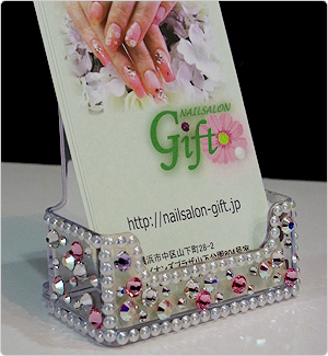 パールとクリスタル・オーロラを散りばめて可愛らしい赤のストーンで全体をしゅっとまとめた大人可愛いカードスタンド。