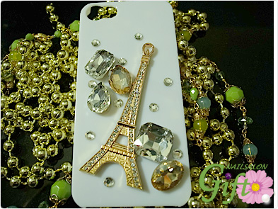 エッフェル塔と大きめストーンでゴージャスで可愛いスマホケースに。