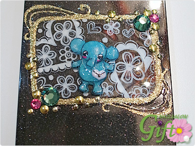 キュートな象さんを引き立たせるためにベースのデザインはホワイトで統一しました。キラキラも加えて運気up!!